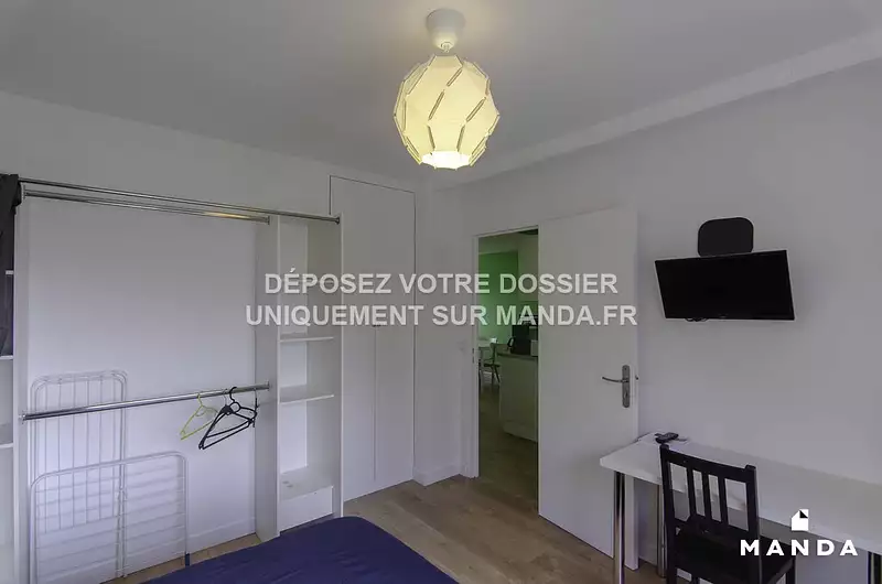 L'appartement se compose de 5 chambres individuelles meublées (environ 10 m² chacune), chacune équipée de :