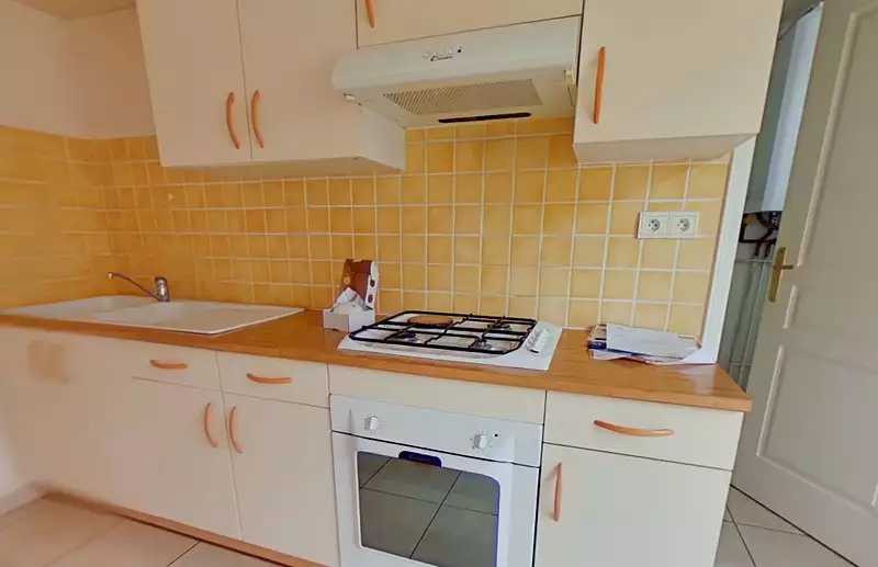 T3 de 81.56 m2 au 2 ème étage. Il se compose d'une cuisine équipée (four, plaque et hotte) de deux chambres, une pièce principale et salle de bain. terrasse. chauffage gaz