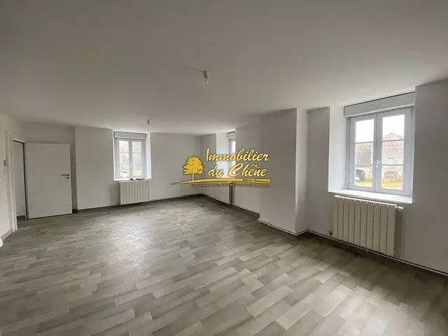 Au premier étage , découvrez ce logement communal refait à neuf comprenant une cuisine ouverte sur séjour, couloir avec placards, salle de bains , toilettes, 2 chambres. Grenier .Place de parking