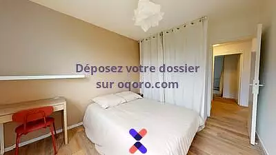 La cuisine est très bien équipée d’un fou, d’un micro-ondes, de plaques de cuisson, d’un frigidaire, d’une hotte, ainsi que d’une table bar accompagné de quatre chaises hautes. Une loggia est accessible par la cuisine. La salle de bain est commune est se munie d’un meuble vasque et d’une douche. Enfin, chaque chambre dispose d’un lit double, d’un bureau accompagné d’une chaise, d’un grand dressing et d’une table de chevet.
