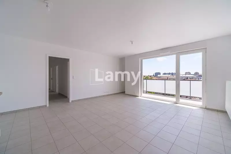 PAS DE FRAIS D'AGENCE A LOUER DANS RESIDENCE NEUVE rue de Rouffach. Profitez d'une adresse au pied du tramway à Mulhouse, À 750 m des bords de l'Ill, Les volumes soigneusement distribués libèrent de beaux prolongements extérieurs : des balcons, loggias ou terrasses, orientés pour la plupart plein sud, vers le jardin commun paysager du coeur d'îlot. Ce T4 de 85.69m² au rez-de-chaussée avec terrasse 7.66m², il dispose d'une entrée avec placard, d'une cuisine équipée hotte, plaque, ouverte sur le séjour volet électrique, 3 chambres de 12.61m² et 10.78m² dont 2 avce placards, une salle de bains, et une salle d'eau, wc séparé. Le chauffage est collectif au gaz compris dans les charges. Cet appartement est loué avec un parking extérieur. Logement soumis à conditions, Une visite s’impose, n’attendez plus vous pouvez déposer votre dossier en ligne sur notre site vous y retrouverez cette annonce ou contactez nous 03.89.33.10.36 pour plus de renseignements.
