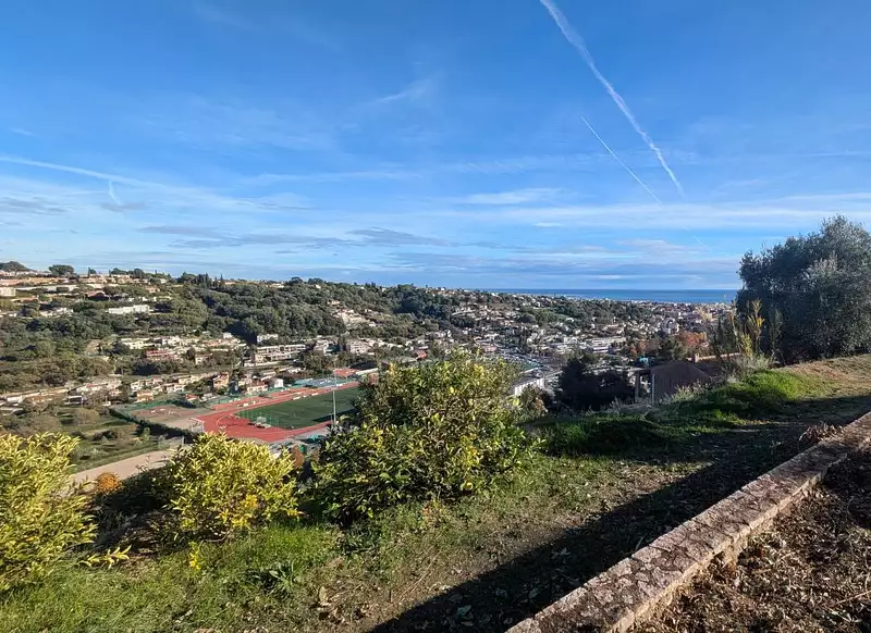CHEMIN DES CAUCOURS - Bas de maison au calme avec un jardin et une terrasse, appartement de 3p comprenant une entrée, un séjour, une cuisine indépendante, deux chambres, une salle de bains, un wc indépendant. Jardin et terrasse exposés SUD-EST avec une belle vue dégagée et un aperçu mer. 2 parkings privatifs. Conso D246 - Ges B28. IMMOBILIERE GTI PLAGE 04.93.31.05.71