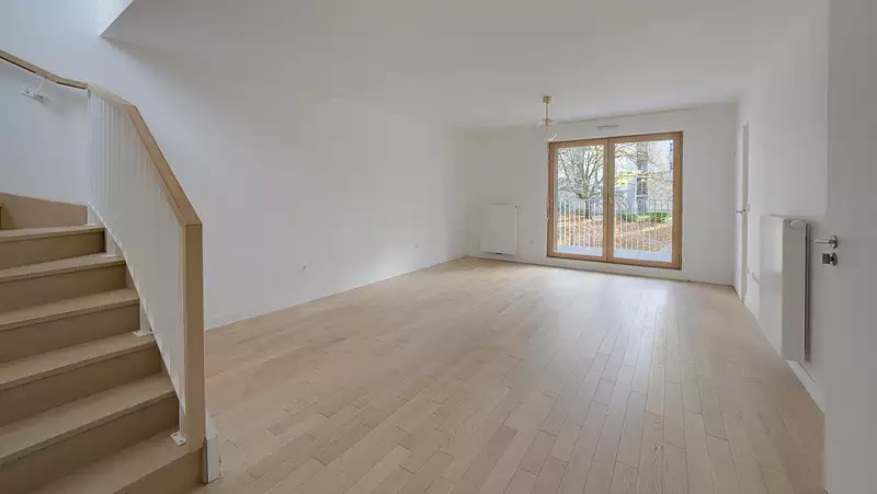Prestations de très grande qualité : parquet chêne massif et menuiseries en bois, double vitrage, carrelages au sol en grès cérame grand format.