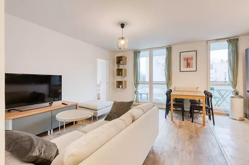 Trois chambres sont disponibles dans cet appartement de 91 m² entièrement rénové et meublé.