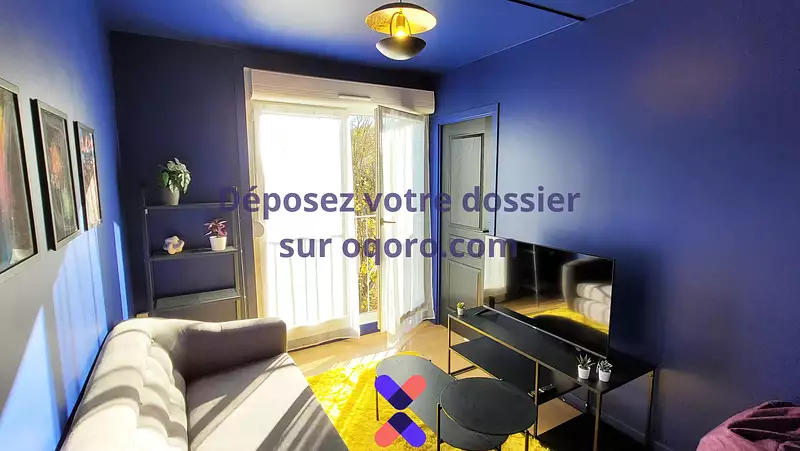 - Un salon cosy : canapé, tapis moelleux, grande TV connectée, bibliothèque, box internet fibre haut-débit, grande baie vitrée avec vue sans vis-à-vis et sans bruit