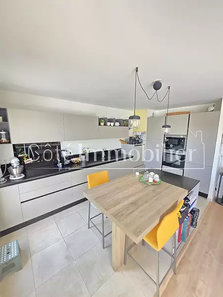 COTE IMMOBILIER Basse Goulaine Plein centre et à pied des commerces et transports. Dans une résidence de 2016 au 3eme et dernier étage avec ascenseur. Très bel appartement traversant de 93 m2 environ avec grande terrasse de 21m² exposée sud. Offrant pour votre confort un grand salon /séjour très lumineux avec cuisine ouverte aménagée et équipée avec des matériaux de qualités , le tout sur une surface de 46m² environ. 3 chambres avec placards aménagées , 2 salles d'eau et wc. 2 places de parking sécurisées,1 abritée et l'autre en extérieur, une cave, un local à vélo. Libre mi décembre 2025. COTE IMMOBILIER - BASSE GOULAINE 26/27 place Saint Brice 44115 Basse Goulaine 02.40.03.43.94