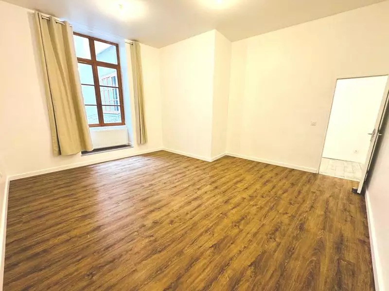 ROMANS CENTRE HISTORIQUE - Grand et joli T3 de 99.60m² situé au 1er étage d'une copropriété refaite intérieurement à NEUF comprenant : une entrée, un immense séjour lumineux avec cuisine ouverte équipée d'une hotte et aménagée, un couloir qui dessert 2 grandes chambres (17 et 22m²), une salle de bains et un WC. Chauffage gaz de ville. CONVENTIONNÉ ANAH = plafond de ressources.