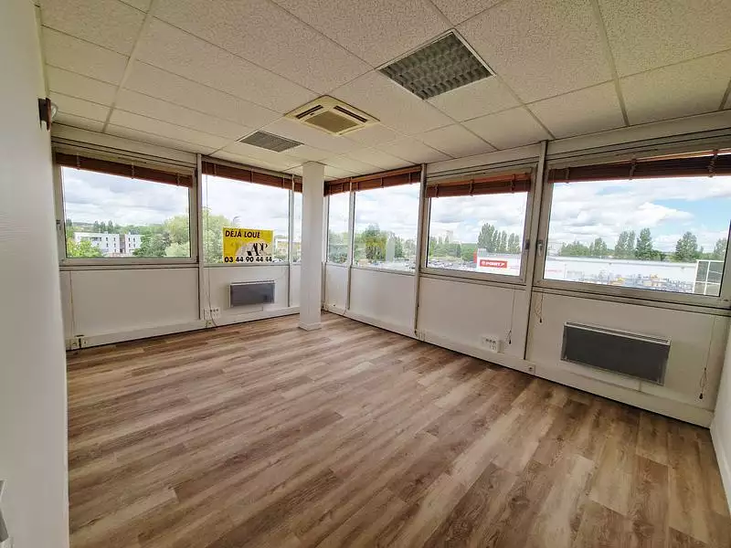 Situé dans un immeuble de bureaux dans la ZAC de COMPIEGNE, un local professionnel de 106 m2 très lumineux situé au 3ème et dernier étage avec ascenseur comprenant: un accueil, 5 bureaux et une salle de réunion. Sanitaires. Chauffage individuel électrique. Bureaux climatisés. Peintures et sols neufs.