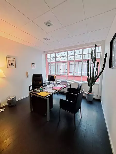 Bureaux professionnel de 109m2, il comporte un hall d'accueil lumineux, quatre grands bureaux ainsi qu'une cusine et d'un wc. Libre le 4 avril 2024.