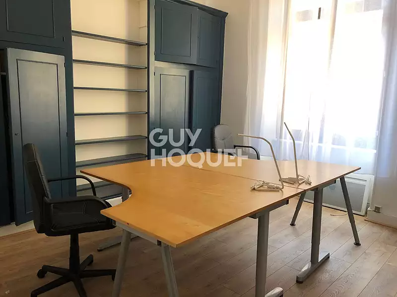 A louer - local professionnel à usage de bureau meublé. Grand placards pour rangement, bureaux et chaises Situé au 2ème étage d'un immeuble en plein centre-ville de CARCASSONNE, sanitaires disponibles en rdc