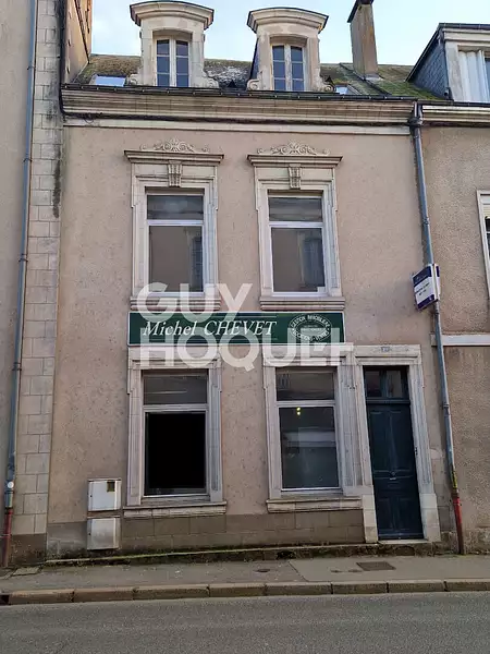 Château Gontier sur Mayenne, quartier Faubourg. Immeuble à usage de bureau bien situé et rénové, d'une surface d'environ 110 m² comprenant : au rdc un hall d'entrée, 2 bureaux, sanitaire. Au 1er étage : 3 bureaux. A l'étage : 2 autres pièces à usage de bureau ou réserve. Au sous-sol 2 caves. Loyer annuel 14 400 euros hors taxe, taxe foncière à la charge du preneur, 1 mois de dépôt de garantie demandé. Disponible.