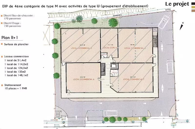 Surface de 114.2 m2, adaptable à divers types d’activités professionnelles.
