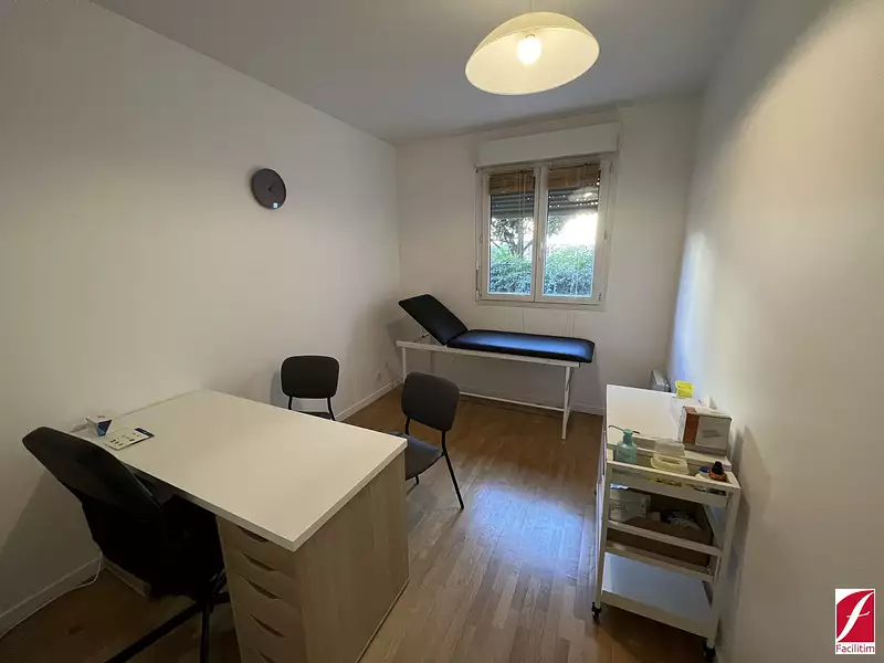 Dans un cabinet paramédical en bon état, nous vous proposons une pièce de consultation à louer très calme et donnant sur un jardin. Point d'eau possible avec travaux. Salle d'attente et sanitaires. Accès PMR. Au 2ème étage. Quartier de Noailles . Parking possible en sus (70 euros/mois). D'autres surfaces plus grandes sont disponibles.