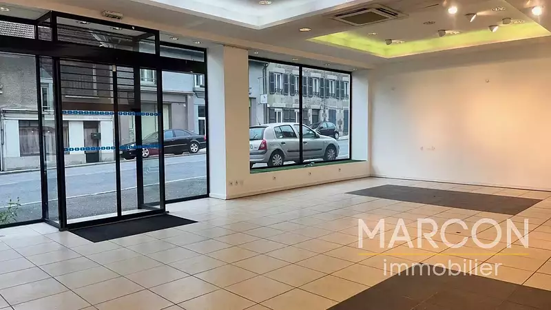 MARCON Immobilier GUERET. Creuse en Limousin, Nouvelle-Aquitaine - réf 88726 - GUERET, proximité centre-ville. Votre agence Marcon immobilier vous propose à la location ce local commercial de 124 m² en rez-de-chaussée comprenant un bel espace de vente avec vitrines, deux bureaux, une arrière-boutique, deux petites pièces, WC. 3 places de parking privatives. Chauffage électrique + climatisation.