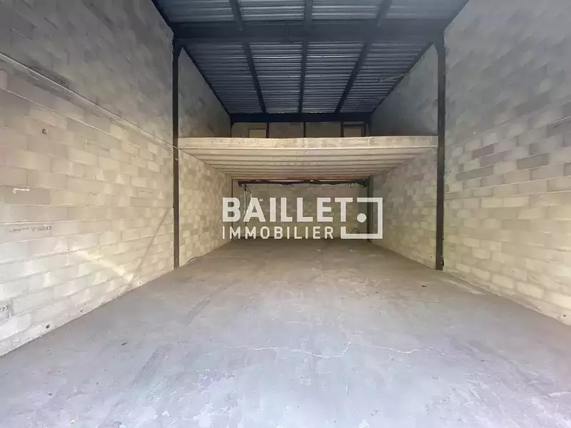 90 m² de plain-pied à usage de stockage plus 35 m² de mezzanine.