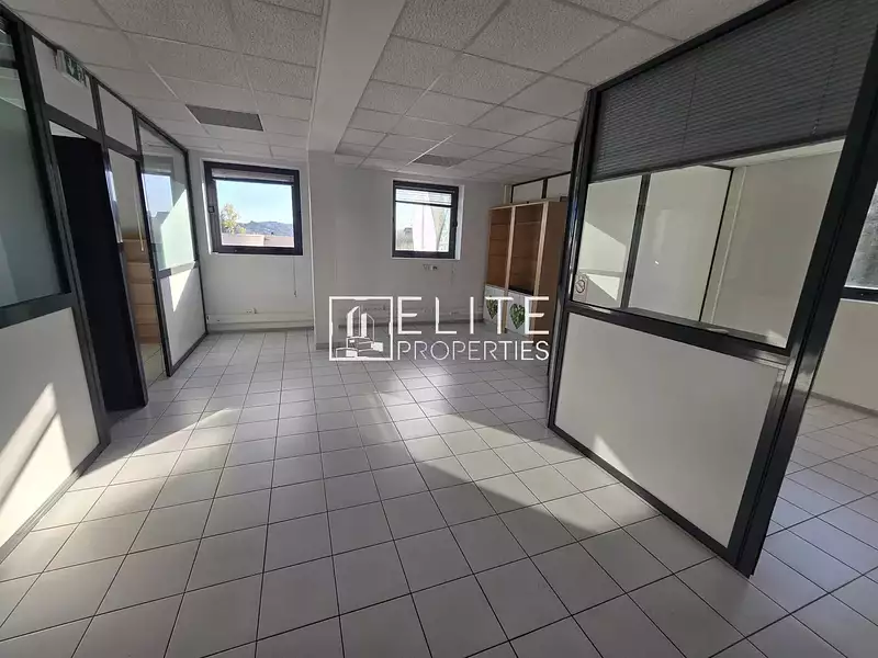 GRASSE – Bureau de 125 m² situé au 1er et dernier étage, avec ascenseur, dans un bâtiment en bord de route offrant une belle visibilité au niveau des Quatre-Chemins.