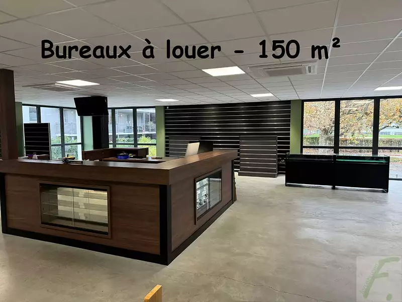 A louer, avec vue lac, un local commercial, professionnel ou bureaux, d'une superficie d'environ 154 m² au premier étage d'un bâtiment récent, aménagé avec un ascenseur. 2 places de stationnement attribuées au local avec possibilité de louer 15 places de stationnement en sus. Parking municipal à proximité. Loyer mensuel : 2 400 € HC/HT (loyer assujetti à la TVA) Dépôt de garantie : 7 200 € soit 3 mois de loyer sans pas de porte. Bail neuf 3-6-9 Charges mensuelles : environ 360 € Taxe foncière à la charge du locataire : environ 2 400 € Honoraires à la charge du locataire 8600 € HT - Dépôt de garantie 7 200 € Consulter notre site Nous contacter : Jean-Luc BOUVIER au 06 07 44 69 48