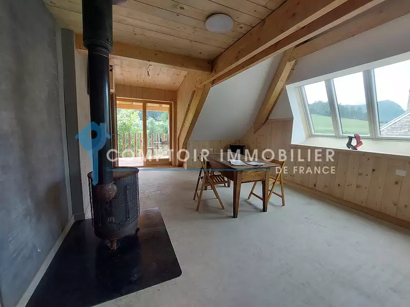 Une salle conviviale de 30 m2 avec poêle à bois, idéale pour des moments de détente ou d’échange.
