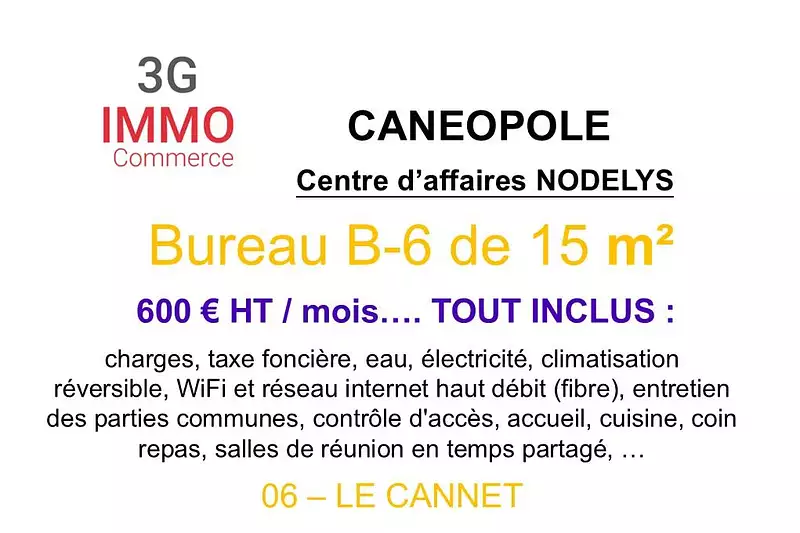 CANEOPOLE - LE CANNET. Centre d'Affaires NODELYS - Bureau B-6 de 15 m² rénové. Location avec prestations.