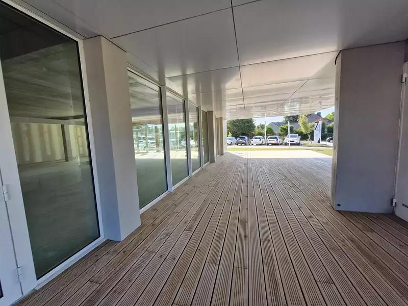 VANNES OUEST - sur axe passant avec 12 000 véhicules / jour- Local commercial NEUF lumineux de 170 m² avec 90 m² de terrasse aménagée par le bailleur pouvant accueillir de la restauration - Surface de vente, réserve, sanitaires avec point d'eau // Loyer annuel : 40.000 € HT / HC - Honoraires agence à la charge du preneur : 9600€ HT soit 11520 € TTC