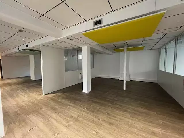 Au 1er étage d'un immeuble récent à proximité immédiate du Métro 4, très beau bureaux de 190 m² comprenant une entrée, un open-space cloisonné partiellement, 2 bureaux, sanitaires et 4 parkings en sous-sol. Chauffage individuel électrique.