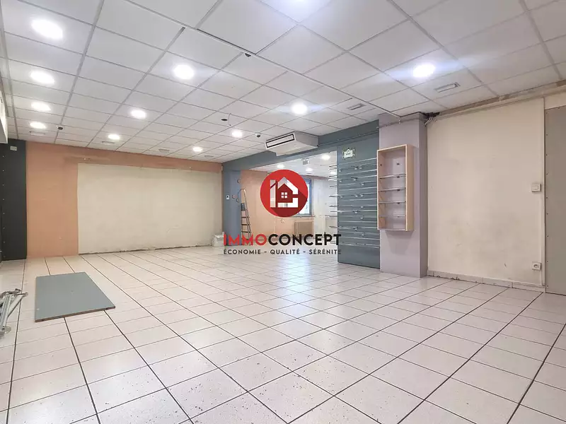 Au centre du village, local commercial d'environ 199m² au total, comprenant, au rez-de-chaussée, une pièce principale de 83,80m² avec vitrine, une pièce arrière de 26m², un bureau s'ouvrant sur une petite terrasse et un local de rangement.