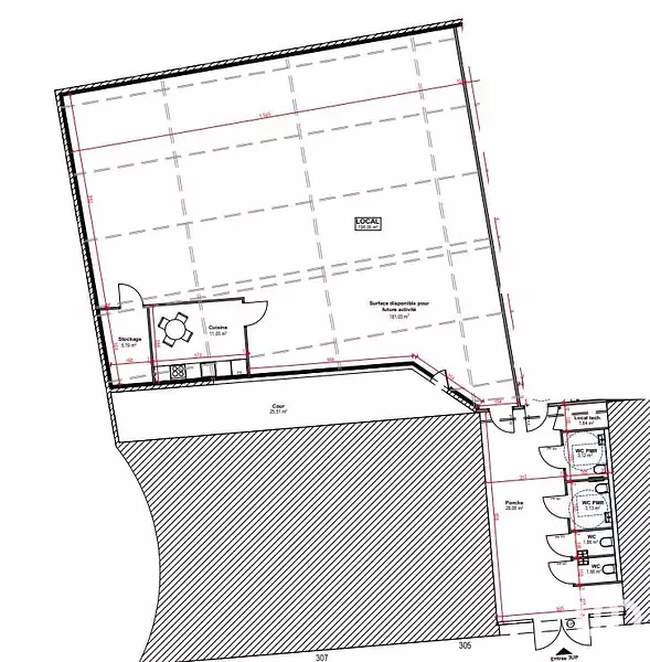 iad France - Anthony Perrin (07 60 49 85 33) vous propose : À LOUER : Entrepôt entièrement rénové de 198 m² environ – A aménager selon vos besoins ! (Côté gauche sur le plan)