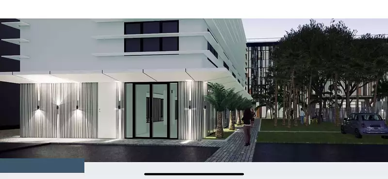 Le projet correspond à la construction d'un bâtiment connectés par un espace de circulation vertical et horizontal entre les 2. le projet prévoit également l'aménagement urbain de la parcelle, avec une zone de parking et un parking central dans l'intérieur du L du bâtiment.