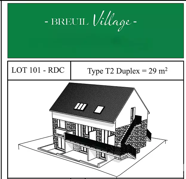 **Disponibilité fin Novembre 2025** Appartement T2 de Standing dans résidence sécurisée, à louer dans la commune de Breuil-Bois-Robert à 5mn de l'A13. Ce Duplex de 29,10m2 tout juste sorti de terre, dans un cadre arboré et au calme, est composé au RDC d’une entrée avec placard desservant un séjour associé à une cuisine équipée (plaque à Induction et hotte). au RDJ, une chambre de 10,5m2 env. avec placard intégré, une salle d’eau de 4,5m2