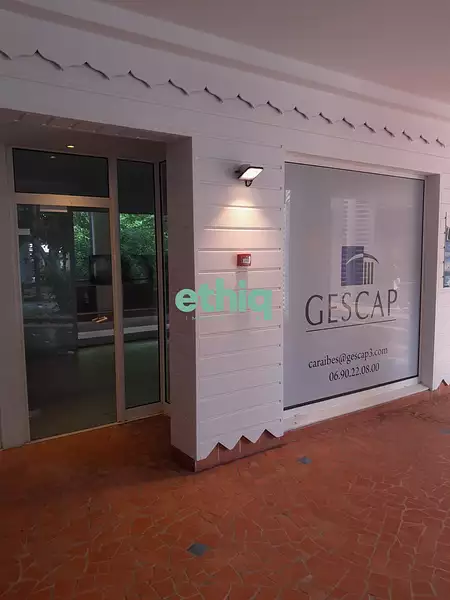 À louer : Local commercial situé au rez-de-chaussée avec vitrine dans la galerie marchande de Manganao, au coeur de Saint-François, à proximité immédiate des plages et des résidences touristiques prisées.