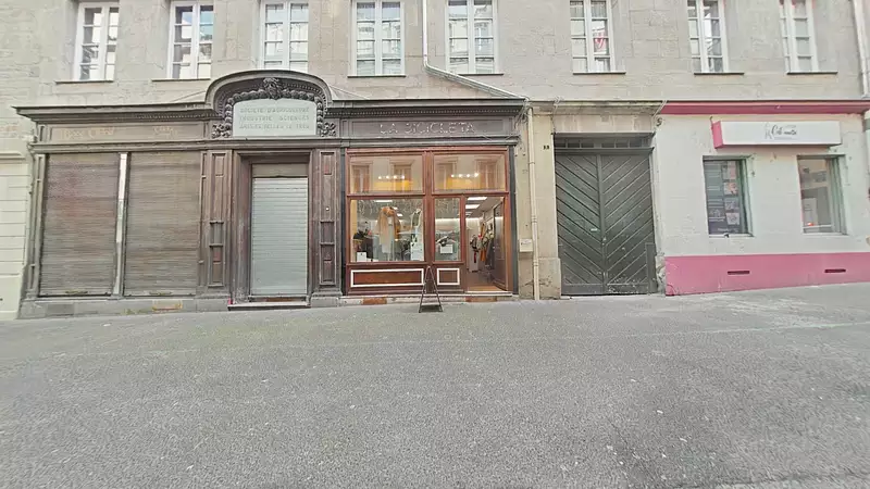 Entrée directe sur surface de vente avec vitrine, un coin cabine d'essayage, un petit espace bureau avec point d'eau & wc, chauff ind gaz, porte double vitrage bois, libre au 25/08/25 (éventuellement dispo en avril).