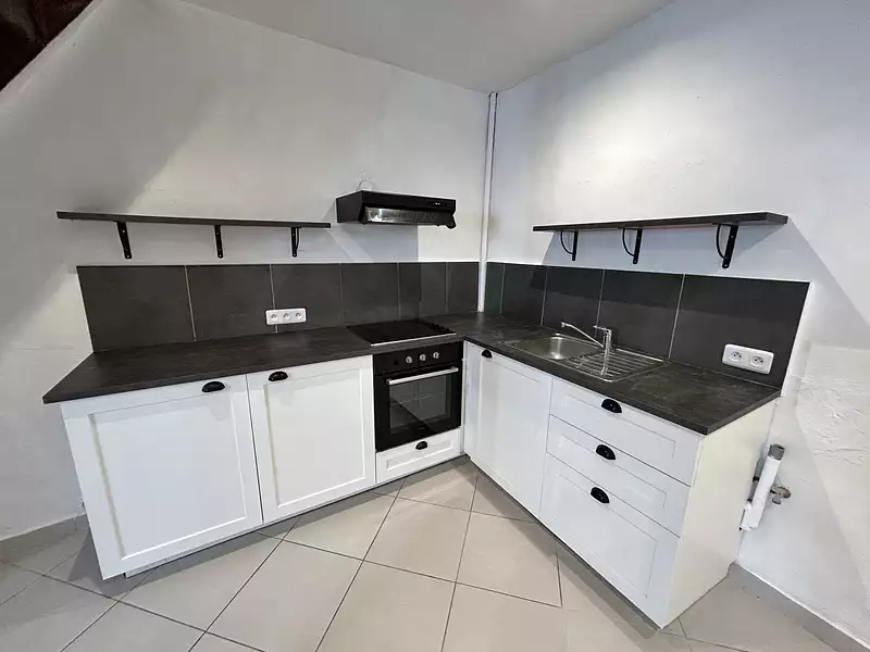 À découvrir ce charmant appartement en duplex situé au deuxième étage d'un immeuble en centre-ville. Sur un premier niveau, vous trouverez un espace salon-cuisine et un WC séparé. À l'étage, une mezzanine et une salle de bain.