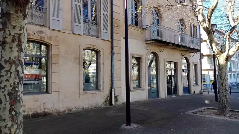 Le local est actuellement configuré pour un usage de bureau, avec un grand accueil, plusieurs bureaux et une salle de réunion.
