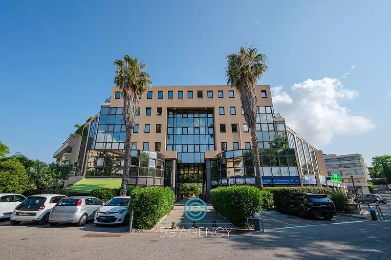 Un bureau de 38m² climatisé et chauffé avec petite vue mer et une place de parking privative en sous-sol (en sus).