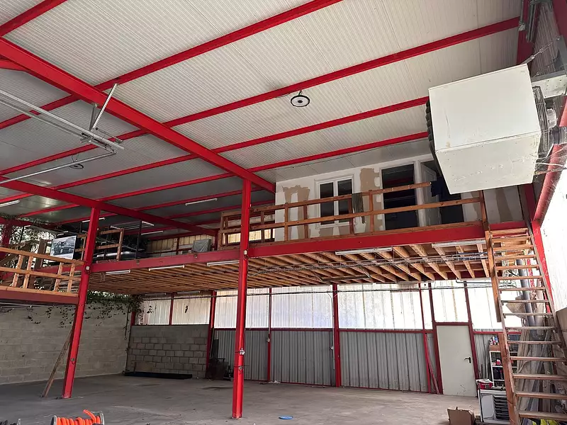 Le bâtiment comprend un atelier fermé, un bureau climatisé (climatisation réversible), ainsi qu’un atelier ouvert à l’arrière, sur sol goudronné. Une mezzanine offre un espace de stockage supplémentaire, tandis qu’à l’avant, un parc de stockage et une plateforme en béton permettent d’accueillir facilement véhicules, outils ou matériaux. Le local comprend également en mezzanine : un bureau de d'environ 25 m2 chauffé et climatisé, une salle de douche avec toilette et vestaire. Chauffage au gaz par aérotherme.