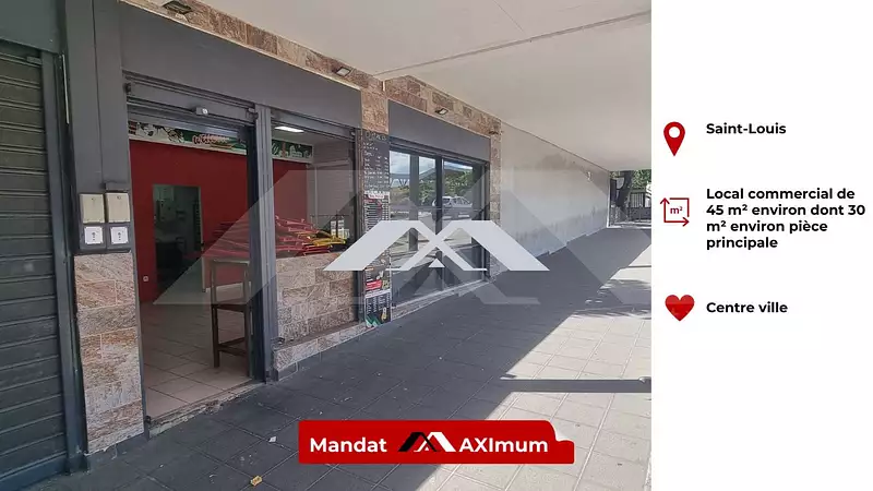 MAXImmo vous propose ce très bon emplacement pour ce local d'environ 45 m² situé sur un axe très passant face à la gare routière de Saint Louis. Potentiel client important avec toutes les habitations autour. Il se compose d'une pièce principale d'environ 30 m² + 1 pièce secondaire + sanitaires. Possibilité d'installer une petite terrasse avec quelques tables sur la devanture. Climatisé. Libre le 25 Janvier 2026. Toutes activités possibles. Bail professionnel, ou commercial ou dérogatoire possibles. Taxe foncière à charge du bailleur.