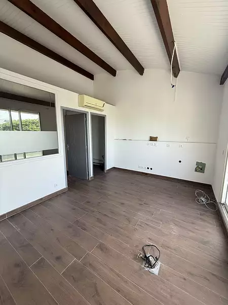 A grand Case, proche de la Pharmacie, dans un batiment moderne au 1er étage, un local commercial de 45m2 disponible. Avec balcon, coin cuisine à aménager et salle d'eau. Possibilité de repenser les espaces.
