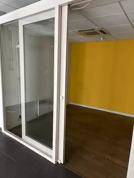 Local de 50m2 avec une grande vitrine en plein centre ville. Il comprend deux pièces séparées par une cloison semi vitrée, coin toilette, accueil, SAS