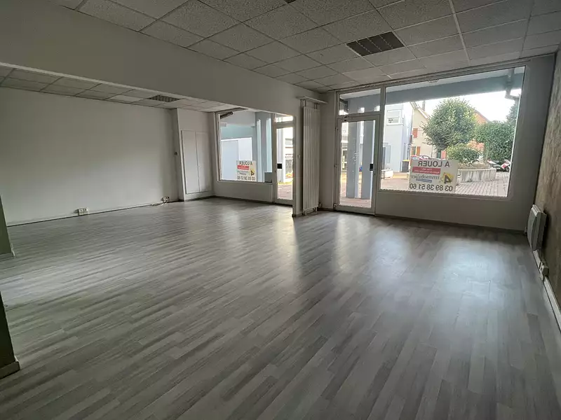A LOUER au centre-ville de Rixheim (rue de l'Etang), beau local commercial faisant parti d'un quartier de commerçants, situé en rez-de-chaussée d'une résidence récente et bien entretenue. Il est composé d'une grande pièce + sanitaires, d'une double vitrine et avec facilités de stationnement à proximité (rue de l'Etang, rue de l'Eglise, parking de l'Eglise). Local climatisé. Possibilité de cloisonner et de créer deux espaces distincts. Les façades de la copropriété ont été rénovées en 2022. Disponible immédiatement. Loyer HT : 582 euros Charges mensuelles environ 17 euros/mois + taxe foncière à la charge du preneur. Honoraires : 500 euros HT ! RESTAURATION NON AUTORISÉE ! Pour tout renseignement complémentaire ou afin d'organiser une visite, n'hésitez pas à nous joindre au 07.87.02.47.44