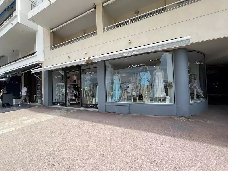 La location d'un local commercial d'une surface totale d'environ 53 m² situé sur le bord de mer de Juan les Pins, sur un axe piéton.