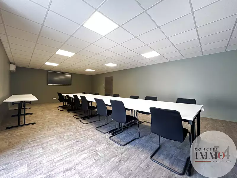 Venez découvrir cette salle de 54m2 pour 20 personnes avec écran numérique, copieur EPSON, salle commune de 72m2 avec kitchenette, 2 toilettes PMR avec Douche et terrasse de 115m2.