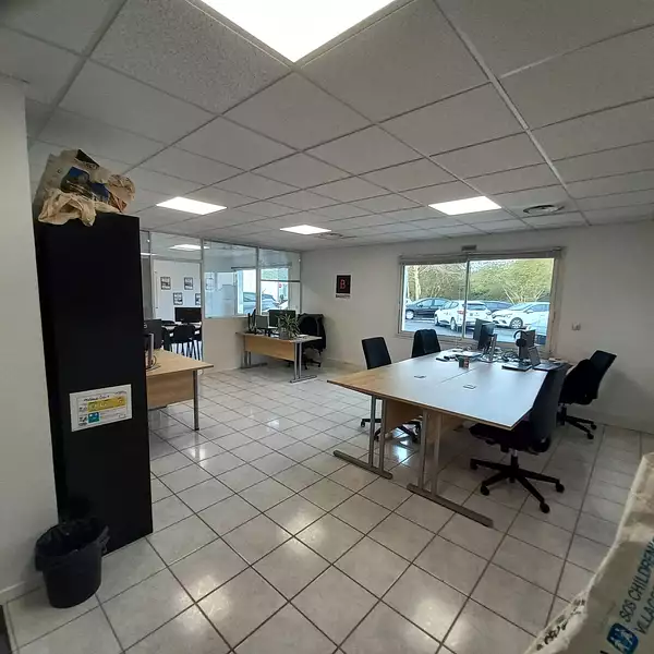 Au RDC d'un immeuble tertiaire, Bureaux d'une surface de 55.35 m² se répartissant en 1 plateau et 1 Bureau fermé.