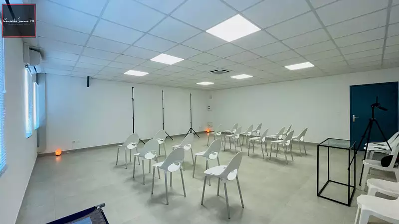 Surface utile de 55 m2 avec climatisation et prises réseaux. Parking disponible autour du bâtiment.
