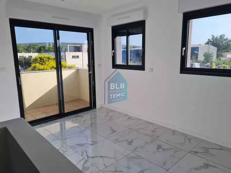 BLB TEMIC vous propose : dans la zone d'activité de Mireval/Vic la Gardiole, local professionnel 60m2 à usage de bureaux, entièrement neuf. Climatisé. Situé au premier étage d'un ensemble de locaux. Deux pièces, coin cuisine, salle d'eau et wc indépendant.