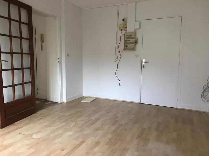 une grande pièce parquetée de 45 m2 environ, un autre bureau de 15 m² et un wc avec lave-mains