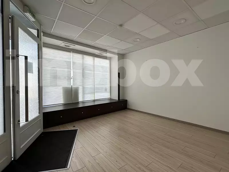 Au rez-de chaussé : d'un hall d'accueil avec vitrine, de deux bureaux et un palier accédant au niveau inférieur
