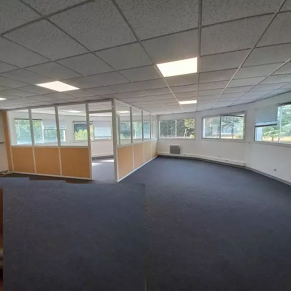 Au 1er étage d'un immeuble tertiaire, ensemble de Bureaux d'une surface de 65 M² se répartissant en 2 pièces avec cloisonnement semi-vitré, Climatisation réversible, Volets roulants, Interphone.
