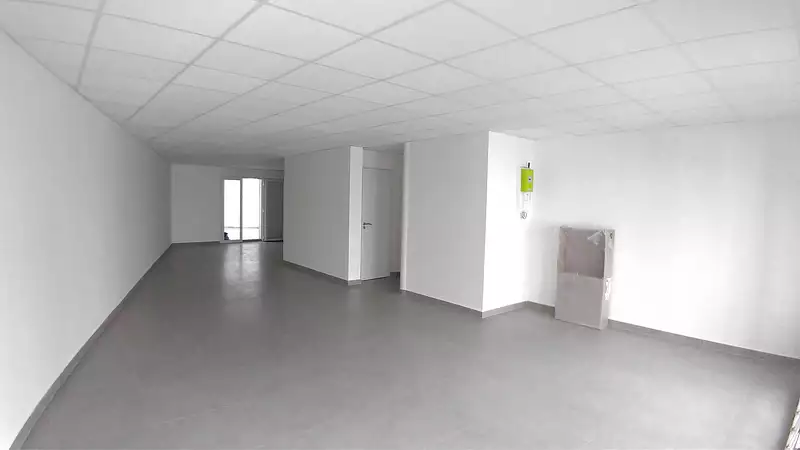Local au rez-de-chaussée d'un immeuble neuf en R+2, disposant d'une grande vitrine donnant sur une ruelle piétonne passante.