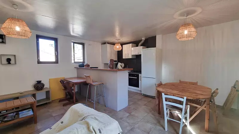 Il se compose d’un séjour avec cuisine équipée, de deux chambres, d’un bureau pouvant faire office de troisième chambre, d’une salle d’eau et d'un WC séparé.