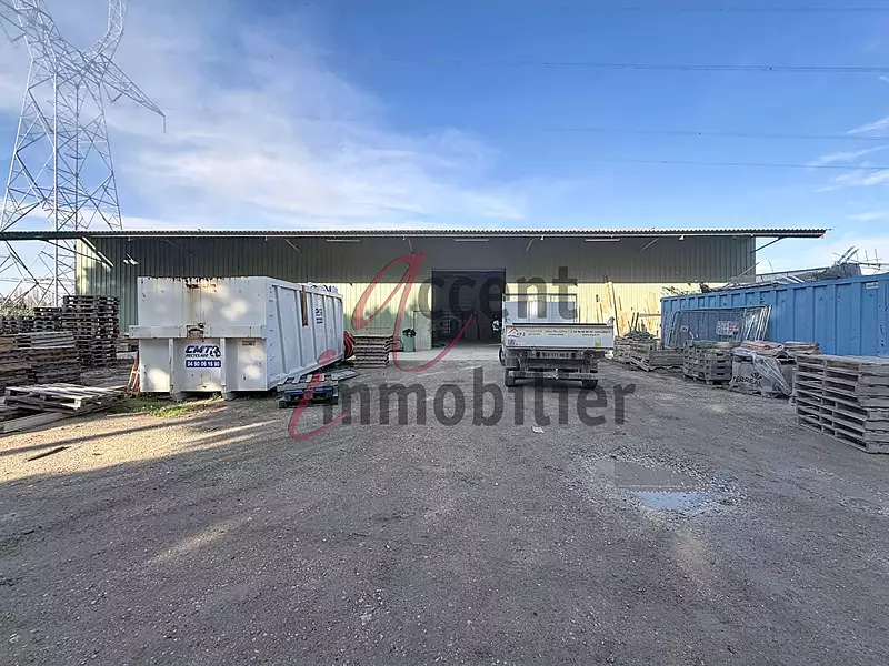 Accent Immobilier Mollégès : hangar de 700 m² comprenant une chambre froide. Hauteur entre 6.90 m et 8.90 m. Possibilité de stationner devant. Stockage uniquement. Disponible en février.